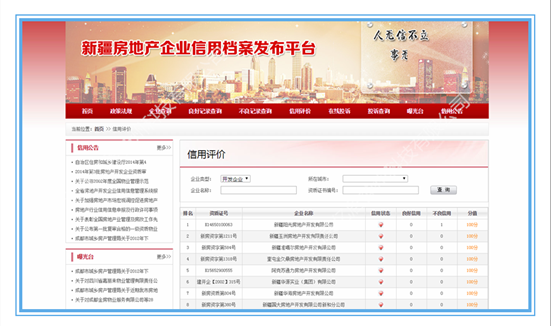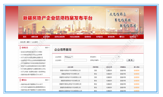 新疆房地产企业信用档案发布平台